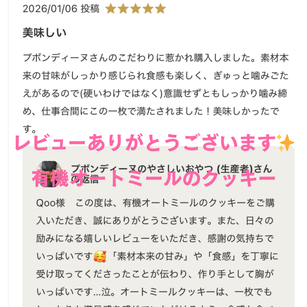 無農薬・有機食材を使用した有機オートミールのクッキーです☺️