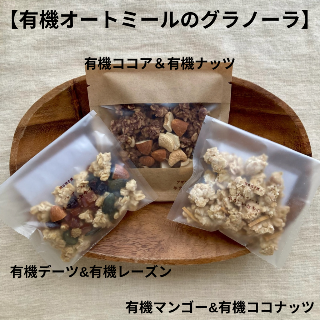 【原材料】 有機オートミール(有機オーツ麦(アメリカ産))、栽培期間中農薬不使用米粉(米(京都産))、菜種油(農薬不使用菜種(熊本県産))、有機アーモンド(アメリカ産)、有機レーズン(トルコ産)、有機かぼちゃの種(オーストラリア産)、有機デーツ(チュニジア産)、有機ココナッツオイル(フィリピン産)、自然海塩(五島列島)、(一部にアーモンドを含む)