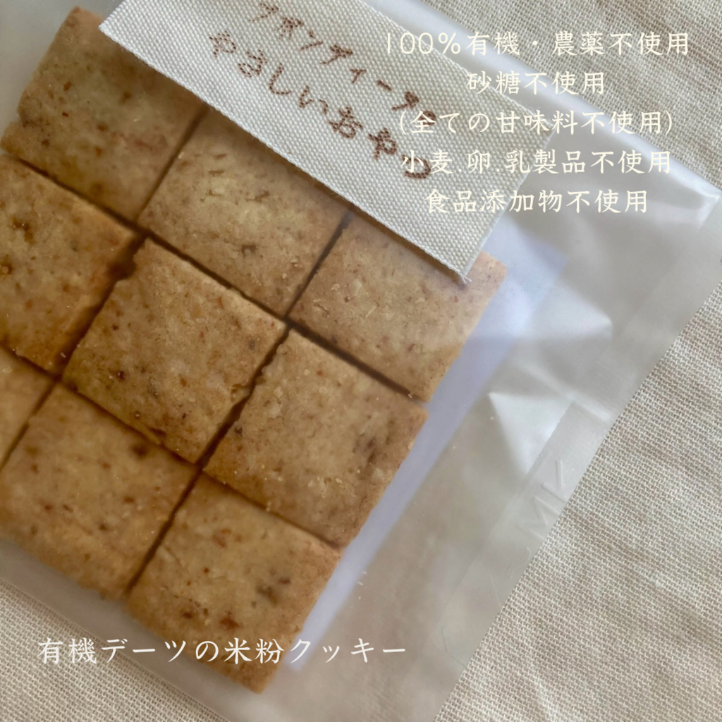 やさしい甘みとコク深い味わいを楽しめる有機デーツを贅沢に使用した無農薬米粉の有機デーツクッキー。