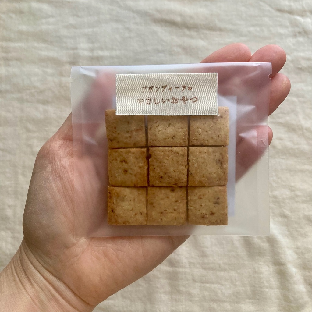 【原材料】:栽培期間中農薬不使用米粉(米(福岡県産))、有機オートミール(アメリカ産)、有機デーツ(アメリカ産)、有機片栗粉(北海道産)、有機アーモンドプードル(アメリカ産)、有機ココナッツオイル(フィリピン産)、菜種油(農薬不使用菜種(熊本県産))、自然海塩(長崎県五島列島)、(一部にアーモンドを含む)