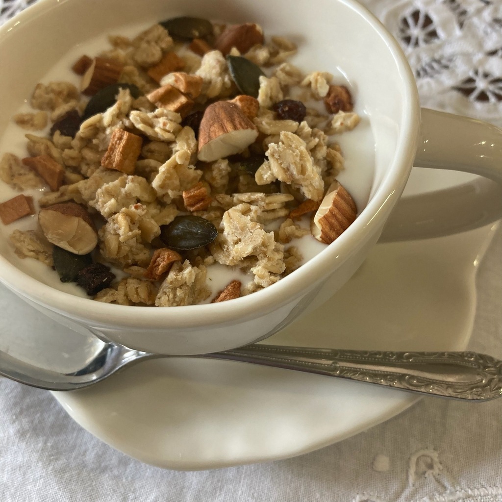 上品な優しい甘みと歯応えが特徴のスーパーフードの有機デーツ・有機トンプソンレーズンを希少価値の高いコク深い有機アーモンド、粒が大きく濃厚な有機かぼちゃの種と合わせました。 ぜひそのまま食べていただきたいグラノーラです✨ 日常生活で不足しがちな栄養が一度に取れて、シンプルだけど毎日食べても飽きない素朴なおいしさをぜひお楽しみください♩