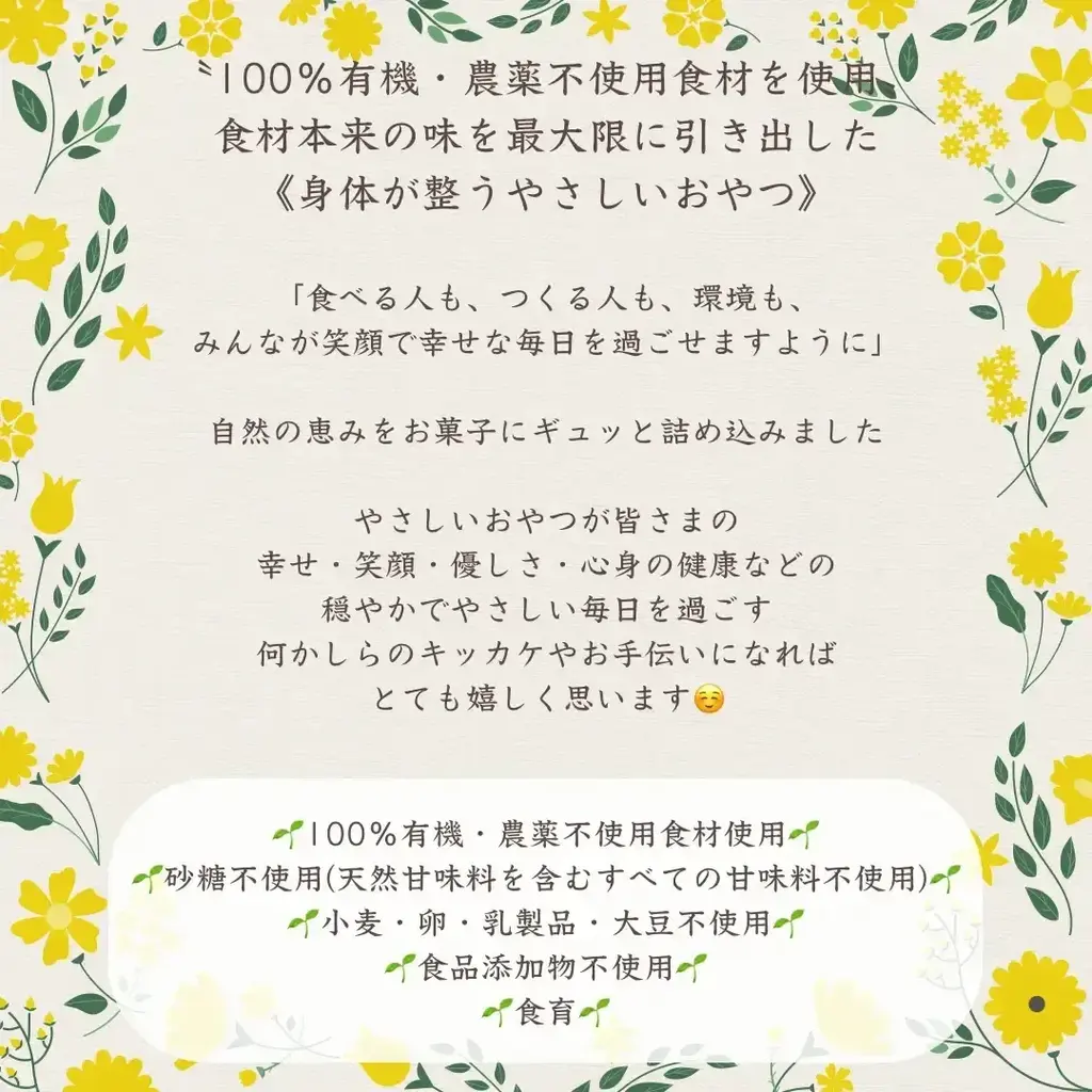 100%無農薬・有機食材《甘味料不使用で甘くない》砂糖(すべての甘味料を含む)・小麦・卵・乳製品・大豆・食品添加物不使用