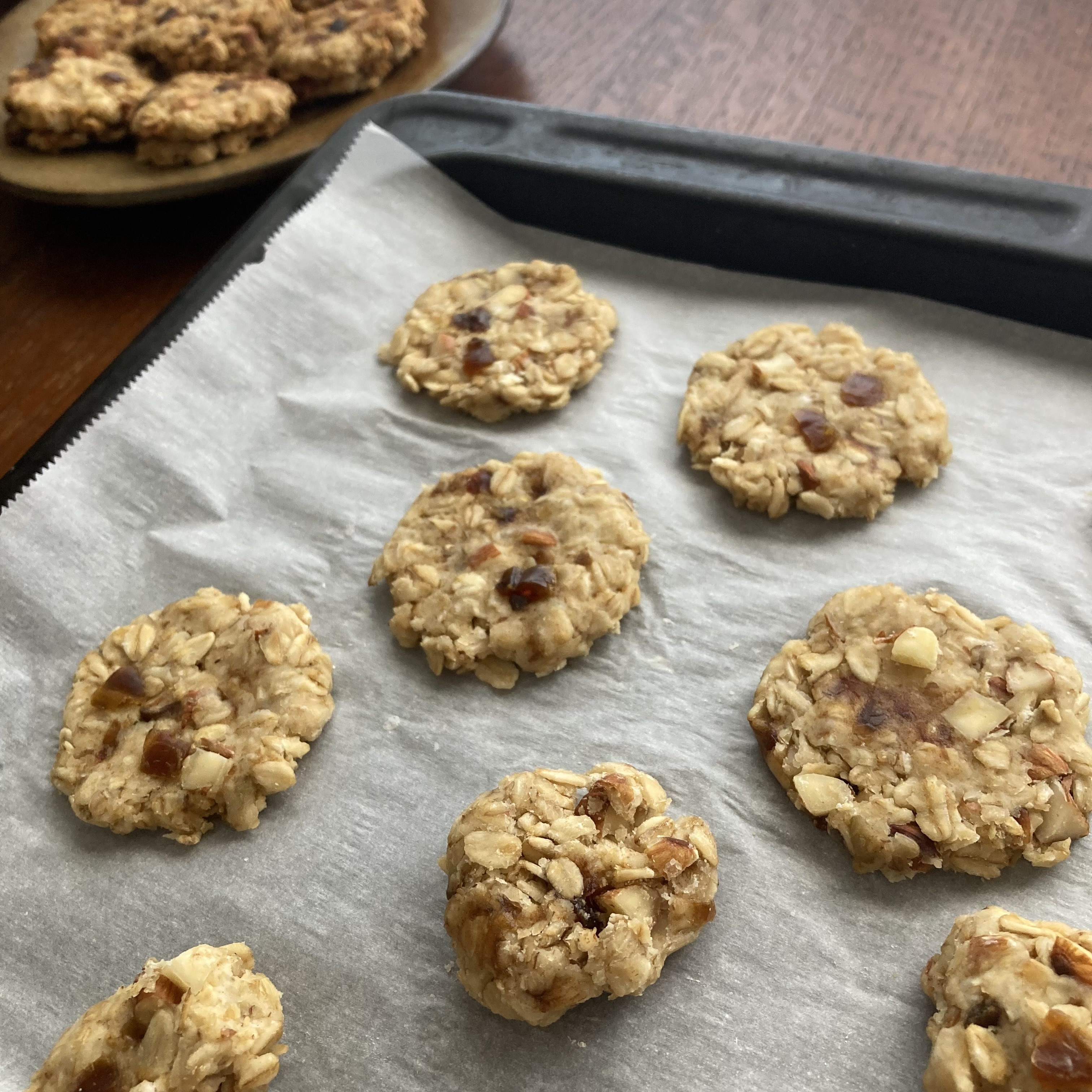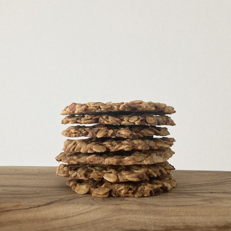 有機デーツの自然の濃厚な甘みとコク深く香ばしい有機アーモンドの食感が楽しめる有機オートミールのクッキー。