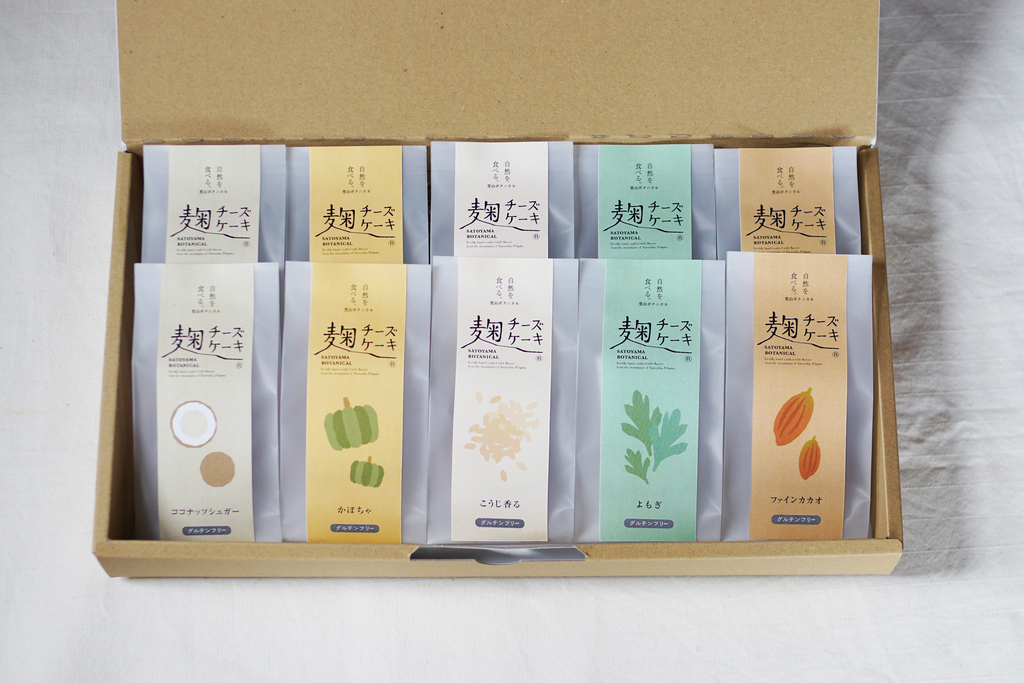 麹チーズケーキの味を一度にお愉しみいただけるアソートセットです。食べきりサイズ(約5.5×2(cm))の麹チーズケーキを計5種×各2個ずつのセットにしておとどけします。 のし対応も無料でいたします。お中元や夏ギフトとしてもお使いください。