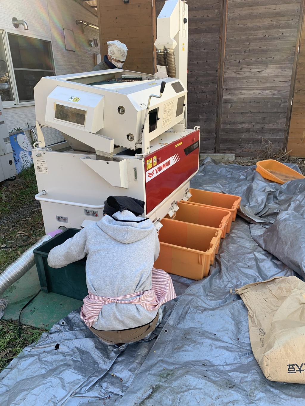今日は小春日和の天気でした 豆腐店の裏では選粒が始まっておりました。