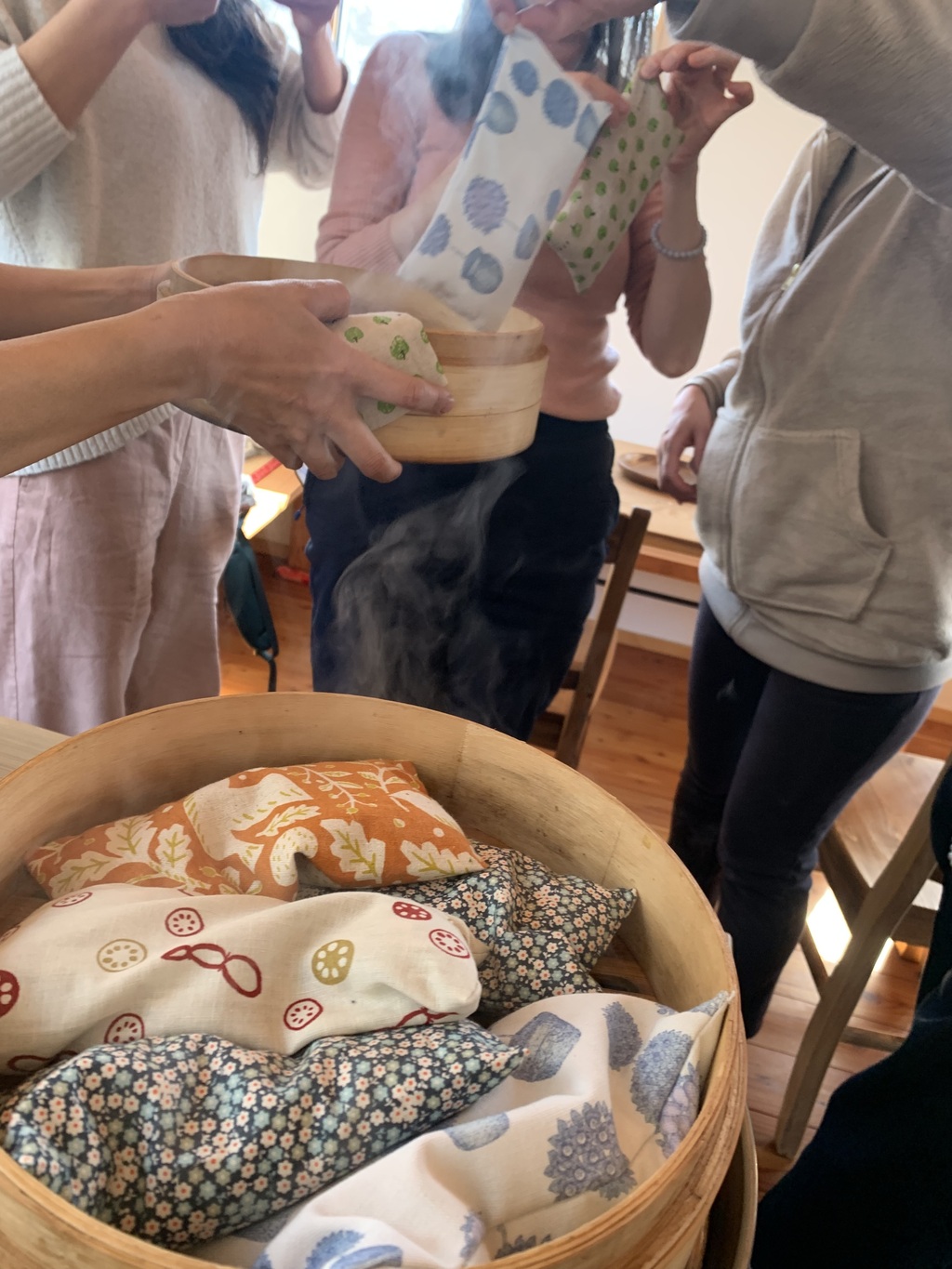蒸篭で蒸し…頭や首、肩、目元に乗せてほっこりタイム♨️