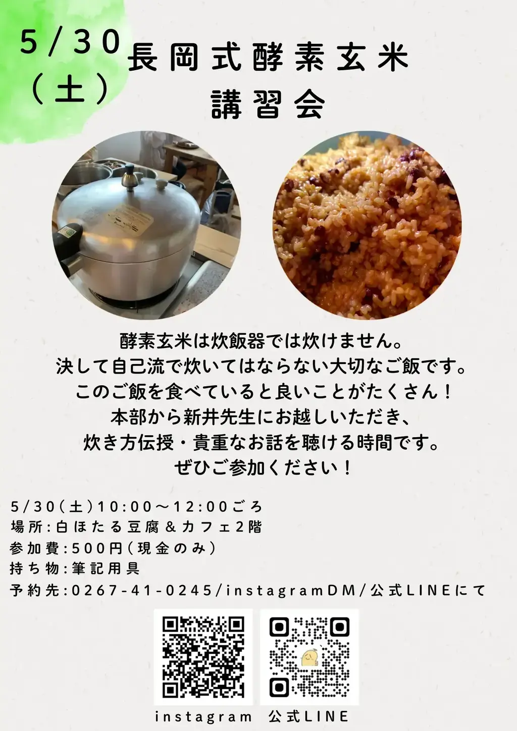 参加費 500円 (酵素玄米ごはんとお味噌汁付) 開催日時5/30(土) 10時〜12時ごろ ※途中退出は自由です。 初めての方は炊き終わりまでみていただくのをおすすめします。