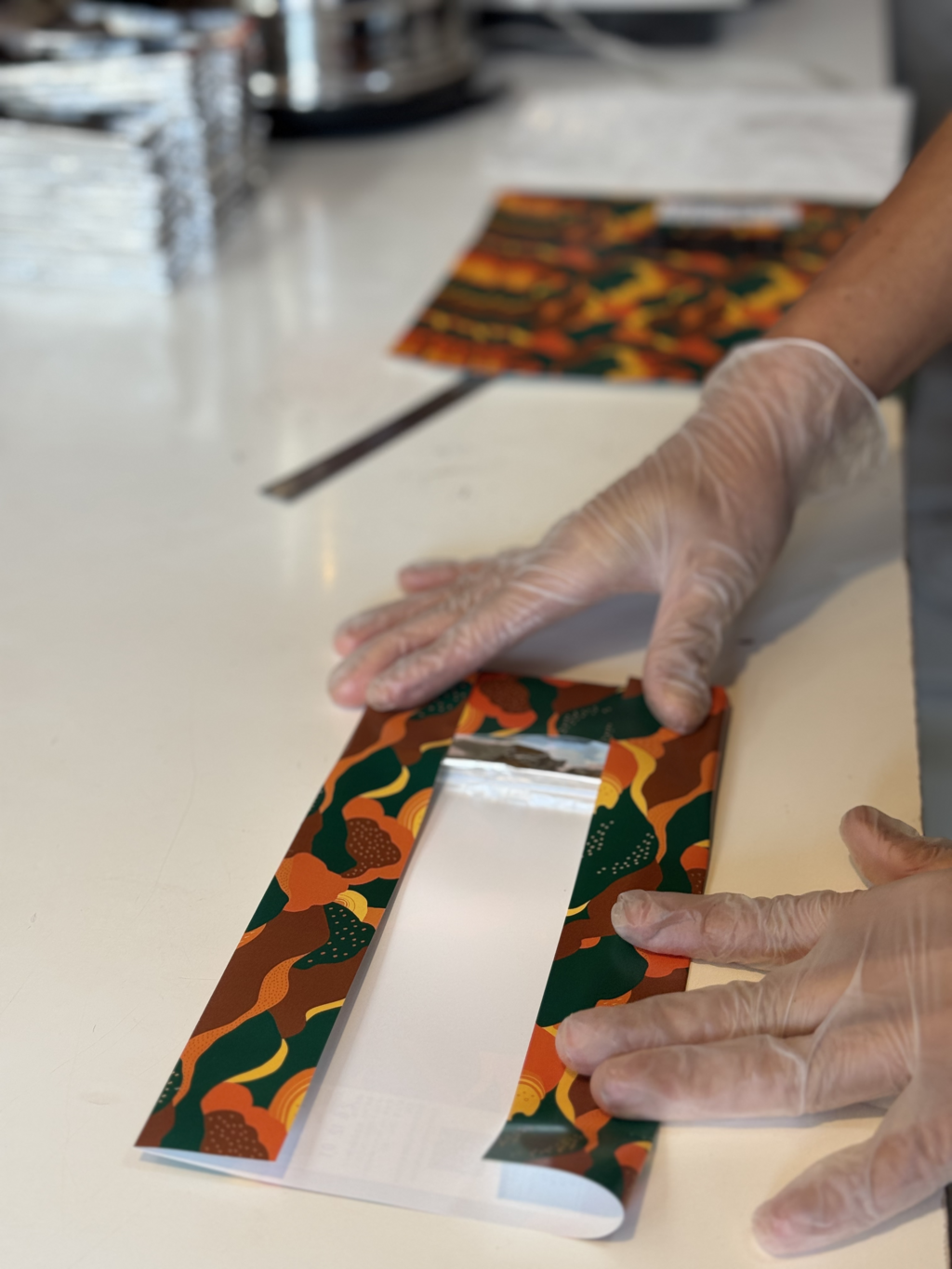 機械が折った完璧な直線ではないかもしれないけれど、手作業だからこそ出る「丁寧な雰囲気」を大事にしたい。 封を開けるときのワクワク感まで、しっかりパッケージに詰め込んでお届けしたいと思っています。