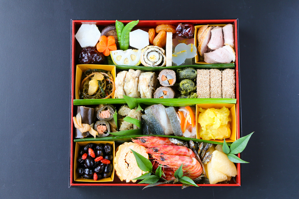 <<おせち重(一段重・2〜3人前)>> ●車海老のつや煮 ●平飼い卵の伊達巻 ●北海道産無添加数の子 ●黒豆(クコの実添え) ●松風焼き ●竜眼巻 ●牛蒡八幡巻 ●北海道産鮭の昆布巻 ●秋川牧園の鶏ロール巻(栗とポルチーニリゾット入り) ●山形庄内鴨ロース ●ぶりの西京焼き ●松前漬け ●たたき牛蒡 ●なつめの甘露煮 ●からし蓮根 ●ゆず寒天【松】 ●ごぼう【竹】 ●花人参【梅】 ●さやいんげん ●里芋六角 ●椎茸旨煮 ●あんず甘露煮 ●田作り ●紅白なます ●国産栗の栗きんとん ●お多福豆の抹茶揚げ