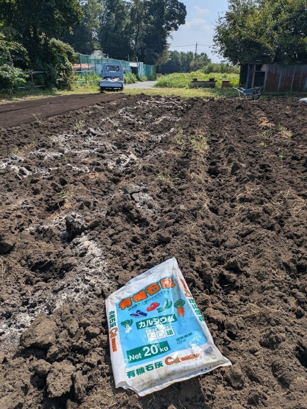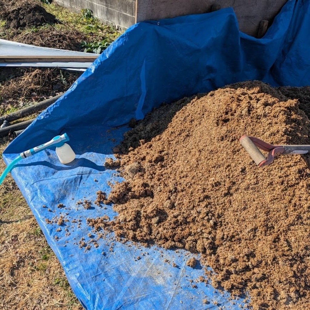 年間通して1トン近く「もみ殻ぼかし」を作り畑に混ぜ合わせ、土の中の微生物をどんどん元気にしていく作業を続けています。畑のPHを調整するために牡蠣殻を粉末にした石灰を使用します。基本的に地球から、自然から生まれたものを利用することにこだわります。