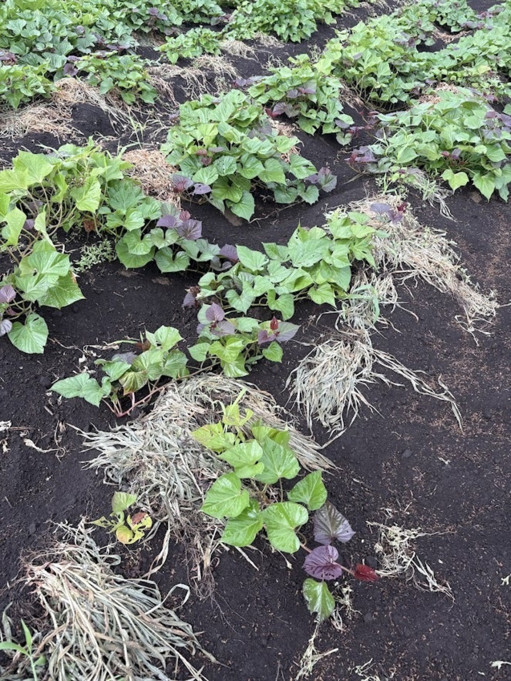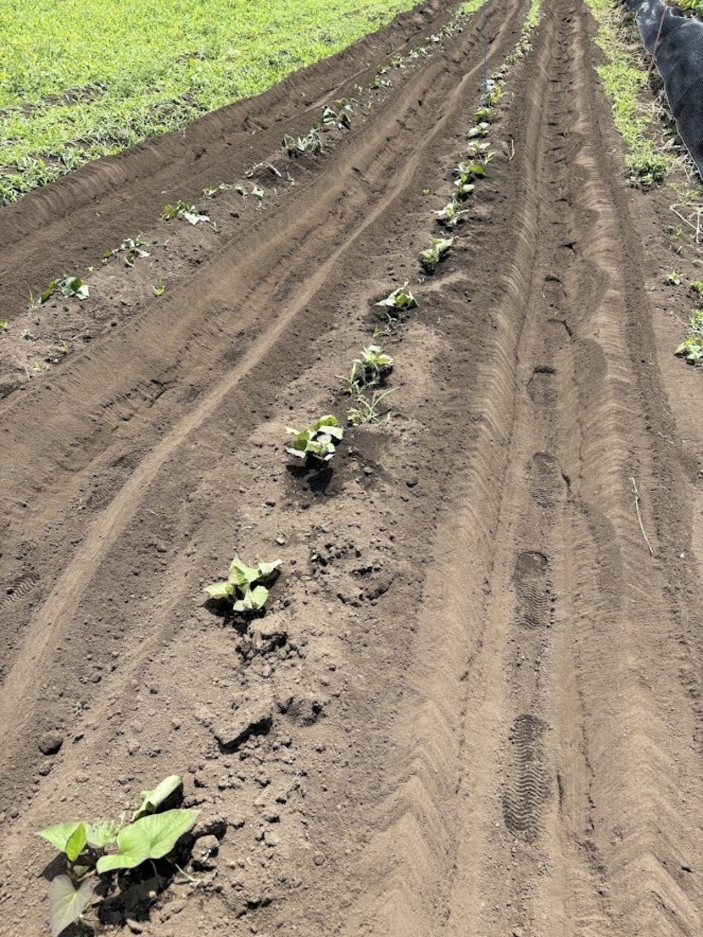 7月1日から8月10日まで全くと言っていいほど雨が降りませんでした。安納芋、べにはるか、紫芋の苗を挿しましたが、根付くまで水やりは欠かせません。汗をかきながらの人力作業です。