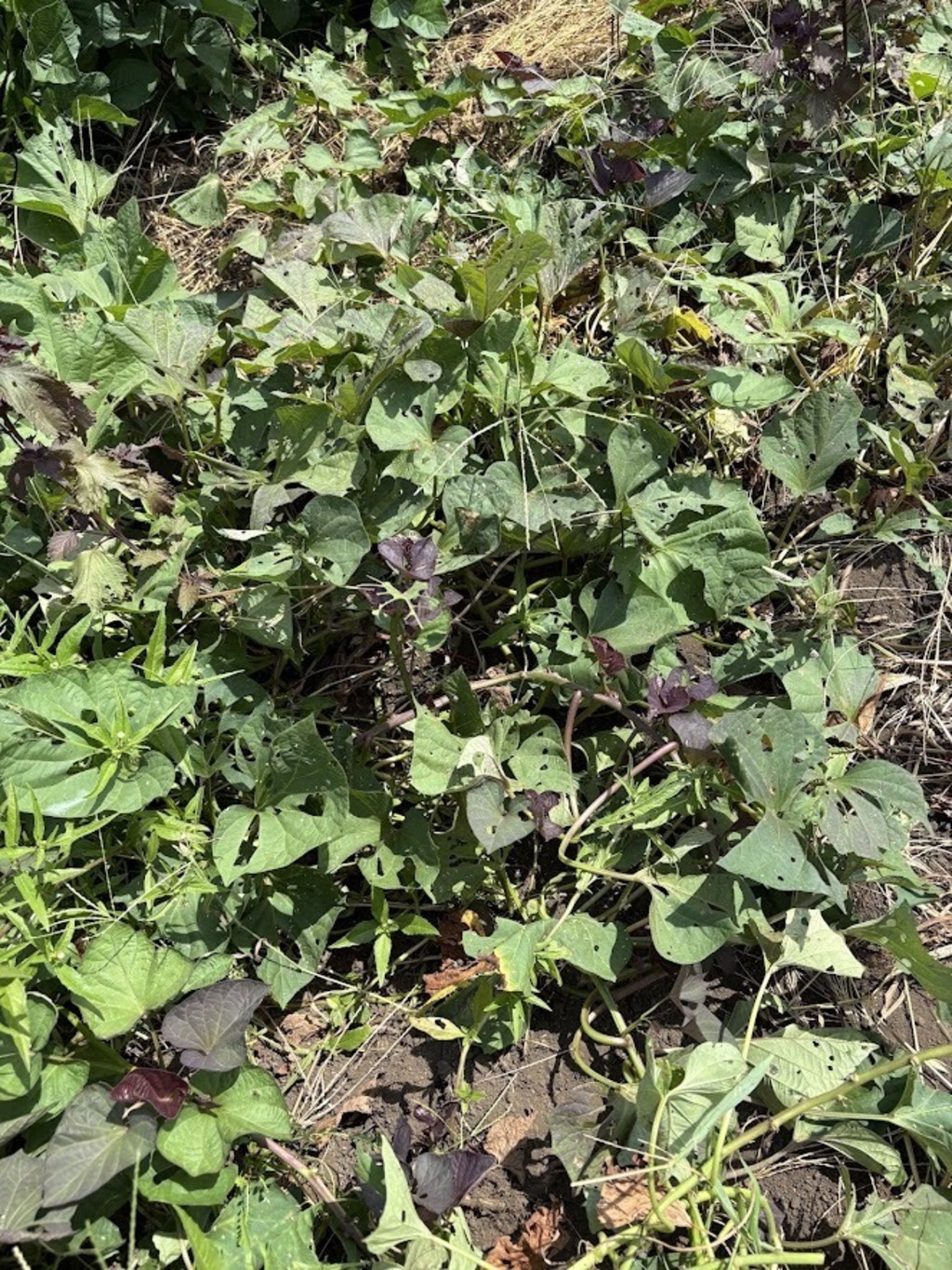 既に土中にできているお芋をしっかり育てるために蔓返しは必要な作業です。連日40度近い気温の中の作業は汗が止まりません。