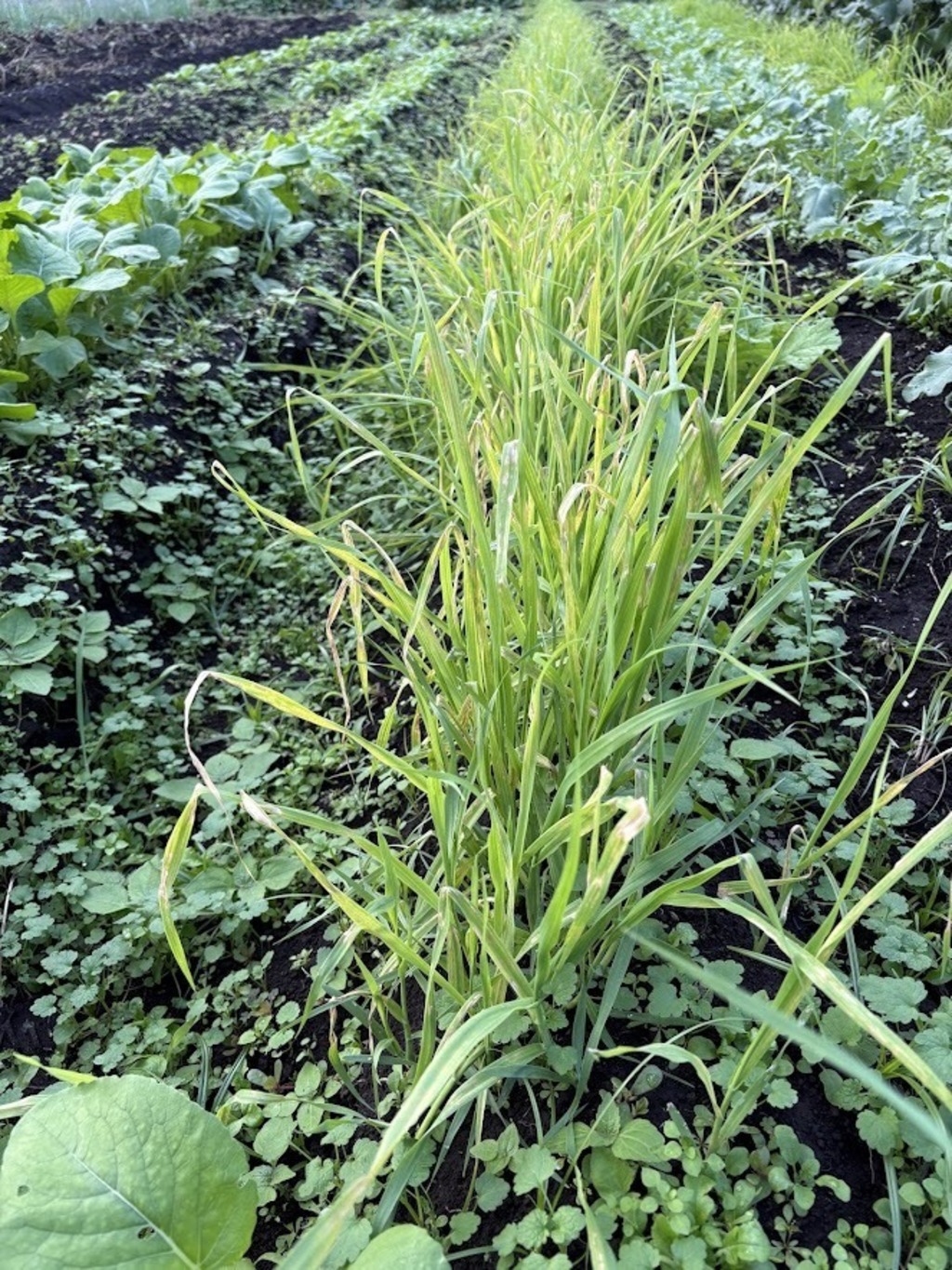 エンバクが育ってきましたが、気温の低下が今年は早く来てしまった為上の方が枯れ始めてきているようです。