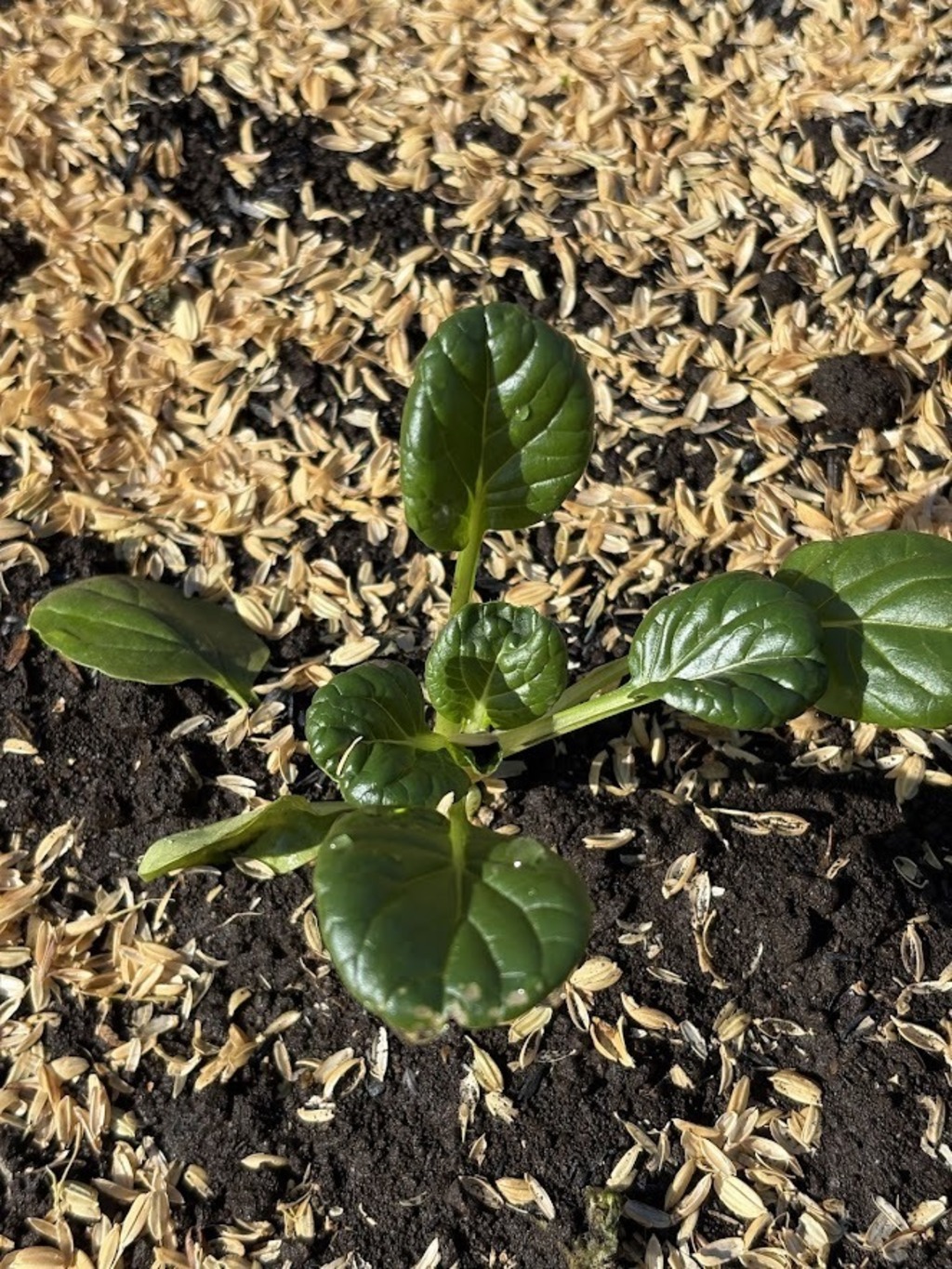 ターサイですが根切り虫に食べられてしまい、全体の株の1/3位の数に激減。葉の緑色がピカピカに光っています。残りの株が大きくなってくれることを願うばかりです。