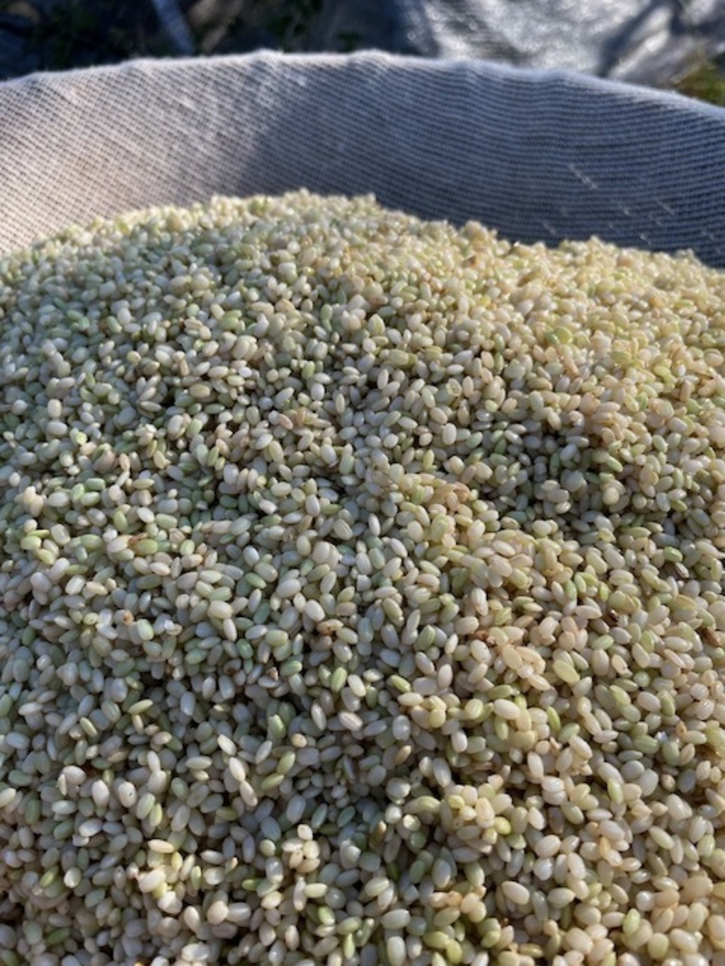 最後に、写真は緑米の稲穂(花)の様子です。 ここまでの(田んぼの準備から田植えなどなど)手間、そしてここからも(草刈りや稲刈り等々)どれだけの手間があって今日のお餅になっているか、考えるととても感慨深いです。 しみじみ、お餅って深いです。美味しいです。 いいお餅、とても難しいです。全て手作業なので、いいお餅ができた時の喜びは本当に大きいです。 ぜひ、皆様に食べていただきたいです!